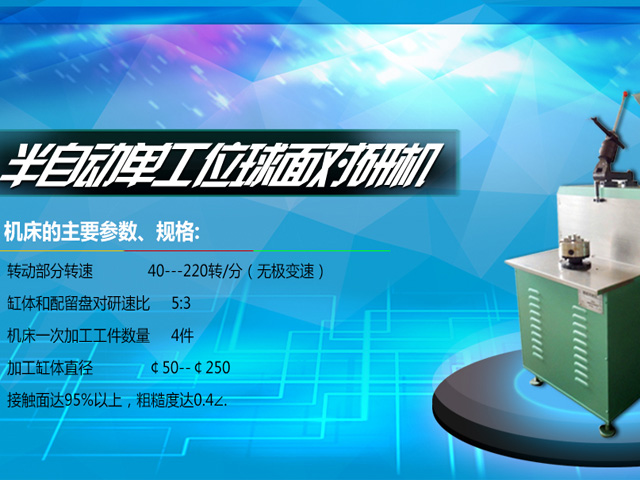 上海雅倩機械制造有限公司(前身上海強亞機械廠)成立于2000年,致力于專用設備的開發和制造,球窩研磨機,半自動弧形槽對研機,半自動球頭研磨機,缸體配流盤球面對研機。從2007年開始生產銷售,有了一定的市場。目前又研發生產了全自動球頭研磨機,半自動缸體柱塞孔拋光去毛刺機,共取得了四項專利,并取得市政府創新基金。